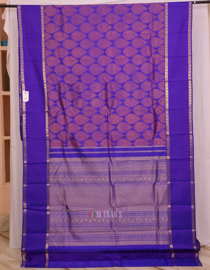 Dark Blue colour Kanchipuram Silk Saree from Tamil Nadu.
