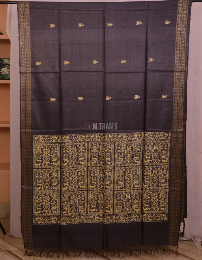 Be the first to review “Kosa Tussar Silk Dark Slate Saree”