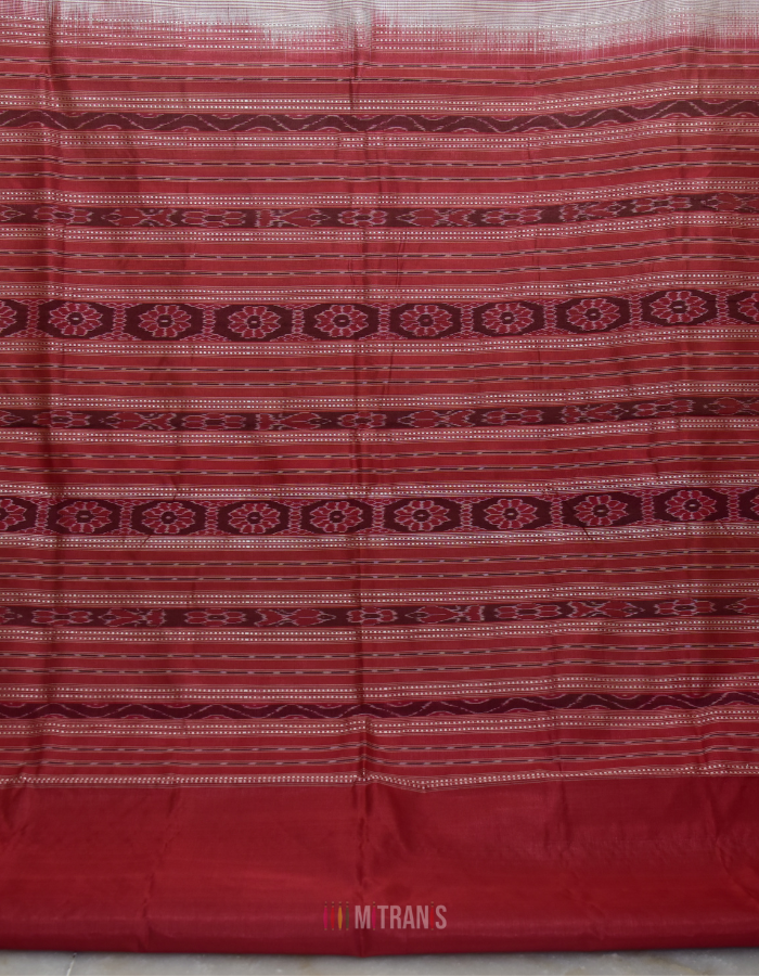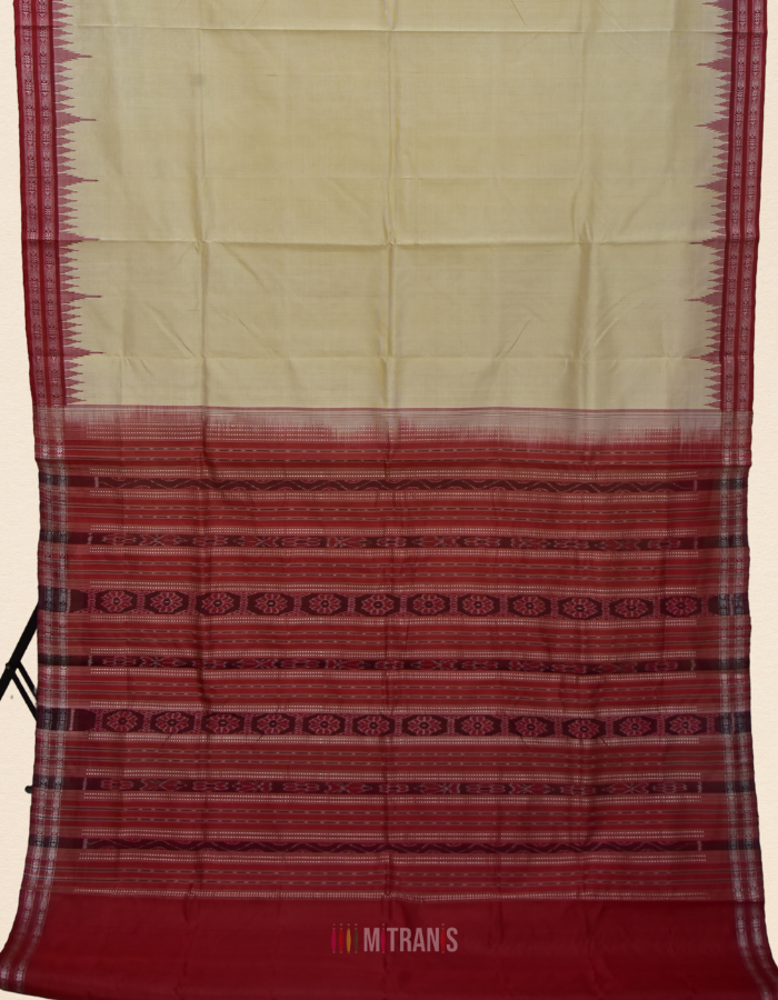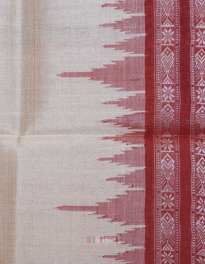 Sambalpuri Fine Tussar with phoda Kumbha silk Border with Ikat Pallu; Weft in double twisted thread, warped in Korean Tussar; Anchal, border and blouse piece all are in Tussar