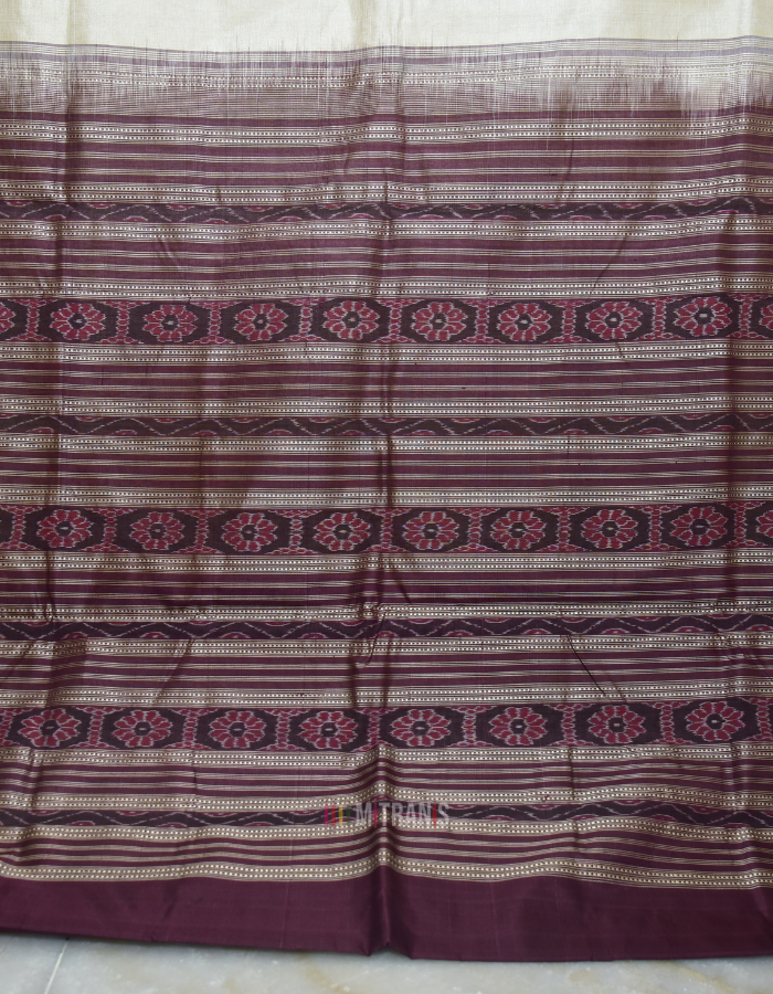 Sambalpuri Fine Tussar with phoda Kumbha silk Border with Ikat Pallu; Weft in double twisted thread, warped in Korean Tussar; Anchal, border and blouse piece all are in Tussar
