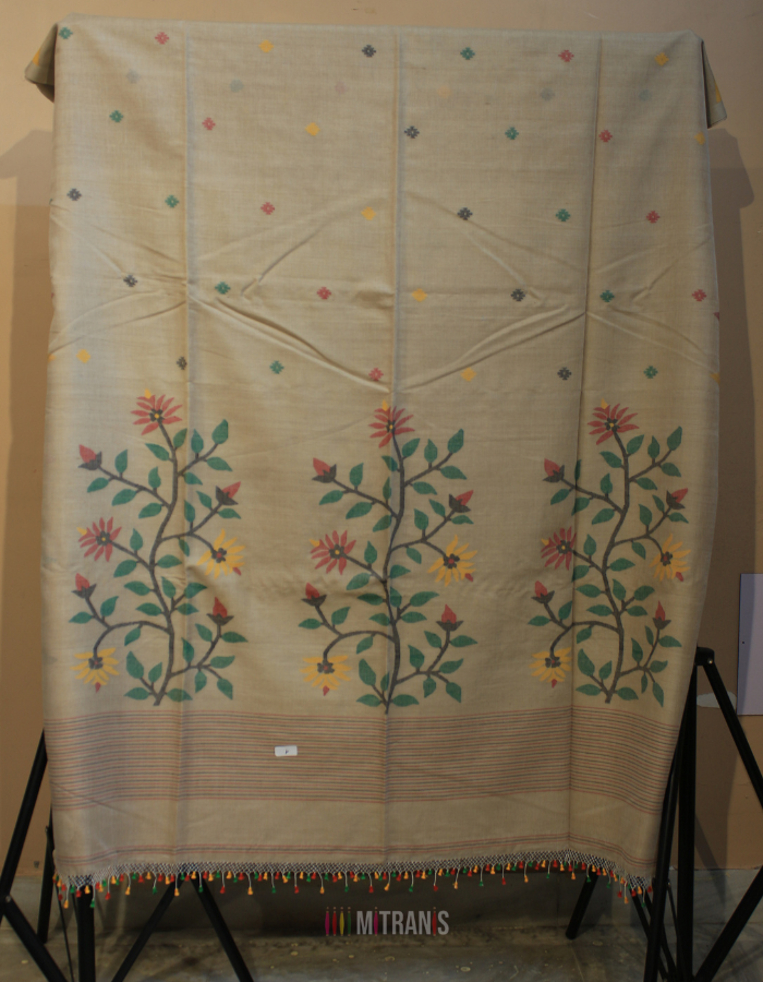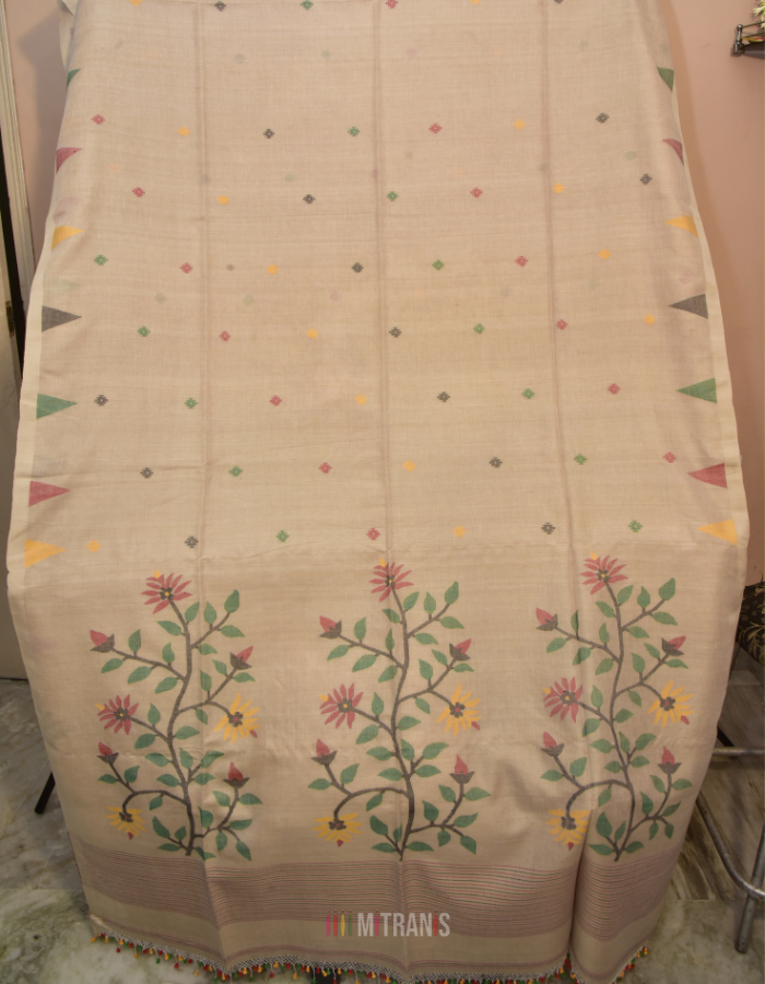 | Color | Beige colour body with multicolour thread work jamdani buti |
