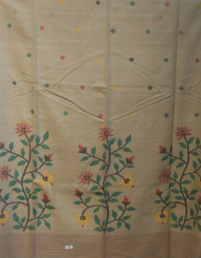 Body: Tussar Cotton Needle Jamdani; Body Beige colour with multicolour thread jamdani work; with Blouse Piece