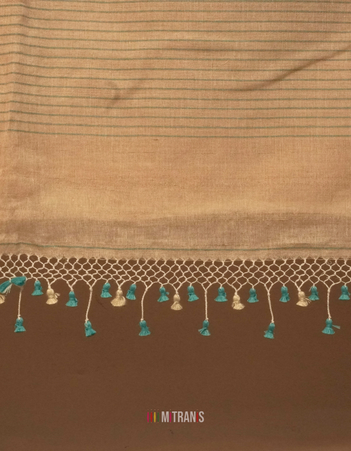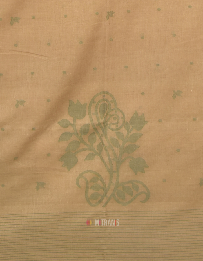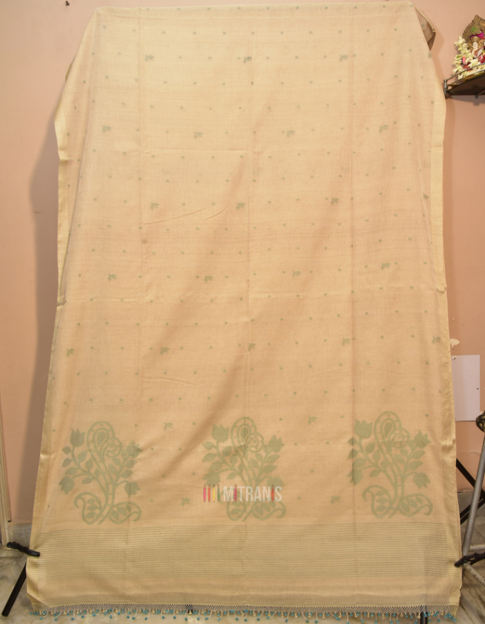 Body: Tussar Cotton Needle Jamdani; Body Beige colour with Pastel Green thread jamdani work; with Blouse Piece